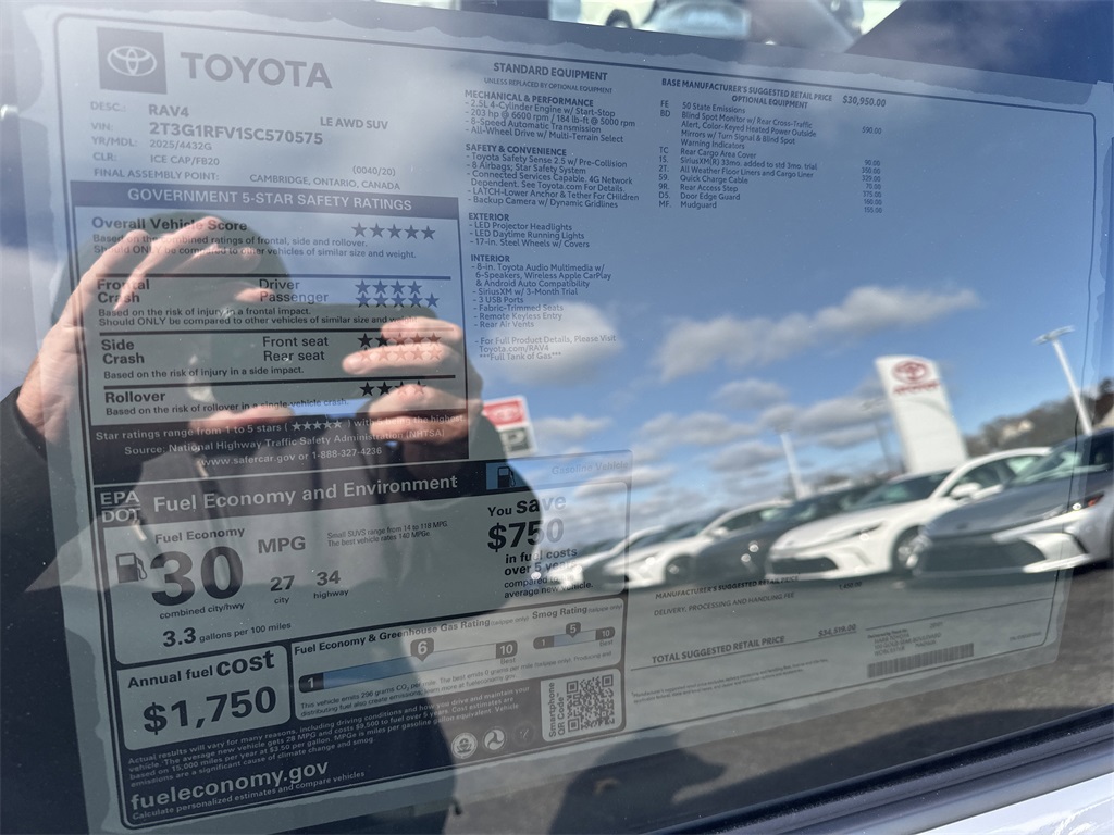 Ice Cap 2025 Toyota RAV4 LE AWD 8-Speed Automatic 2.5L 4-Cylinder DOHC Dual VVT-i PERFECT PRICE!, SERVICE RECORDS AVAILABLE, AWD, Black Cloth.