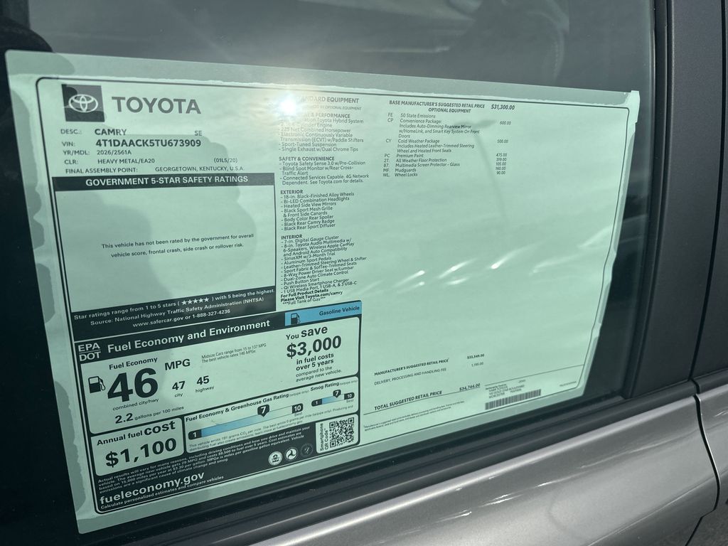 01l5 2026 Toyota Camry SE FWD eCVT 2.5L 4-Cylinder 16V DOHC PERFECT PRICE!, SERVICE RECORDS AVAILABLE, Black Cloth.