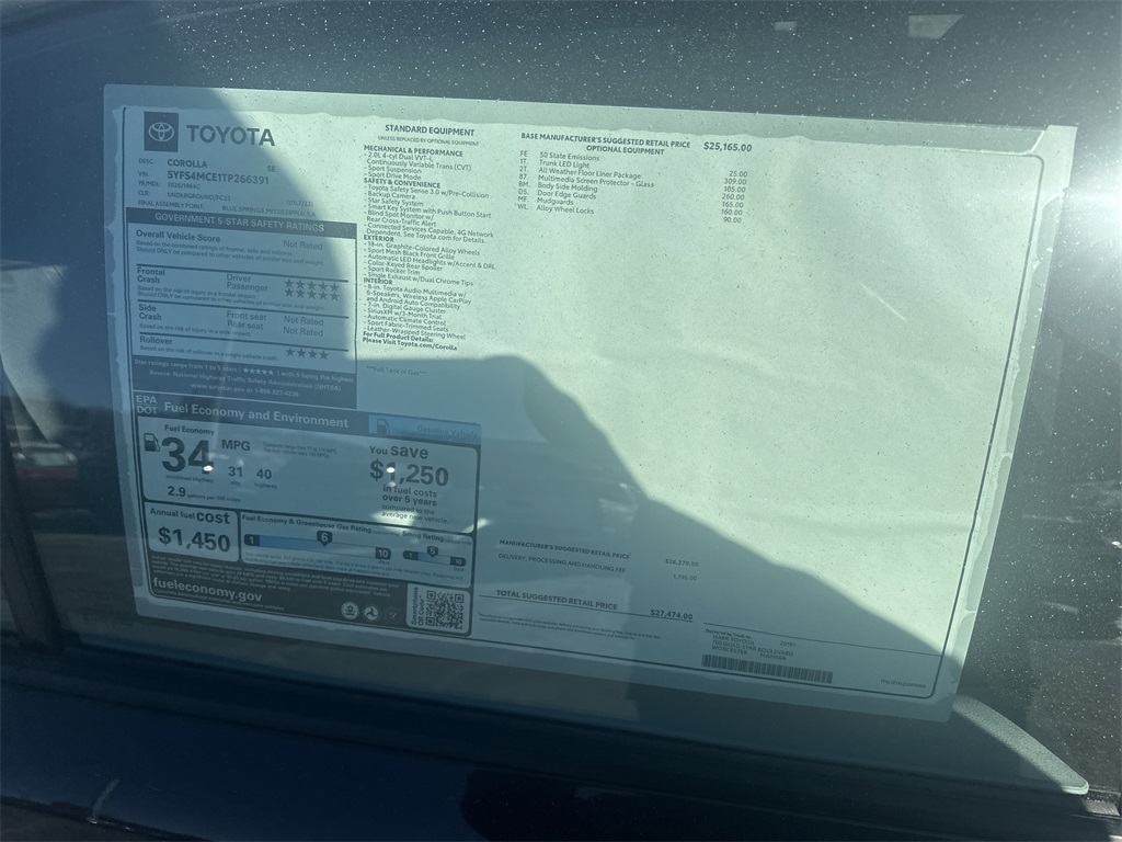 01l7 2026 Toyota Corolla SE FWD CVT 2.0L I4 PDI DOHC 16V LEV3-SULEV30 169hp PERFECT PRICE!, SERVICE RECORDS AVAILABLE.