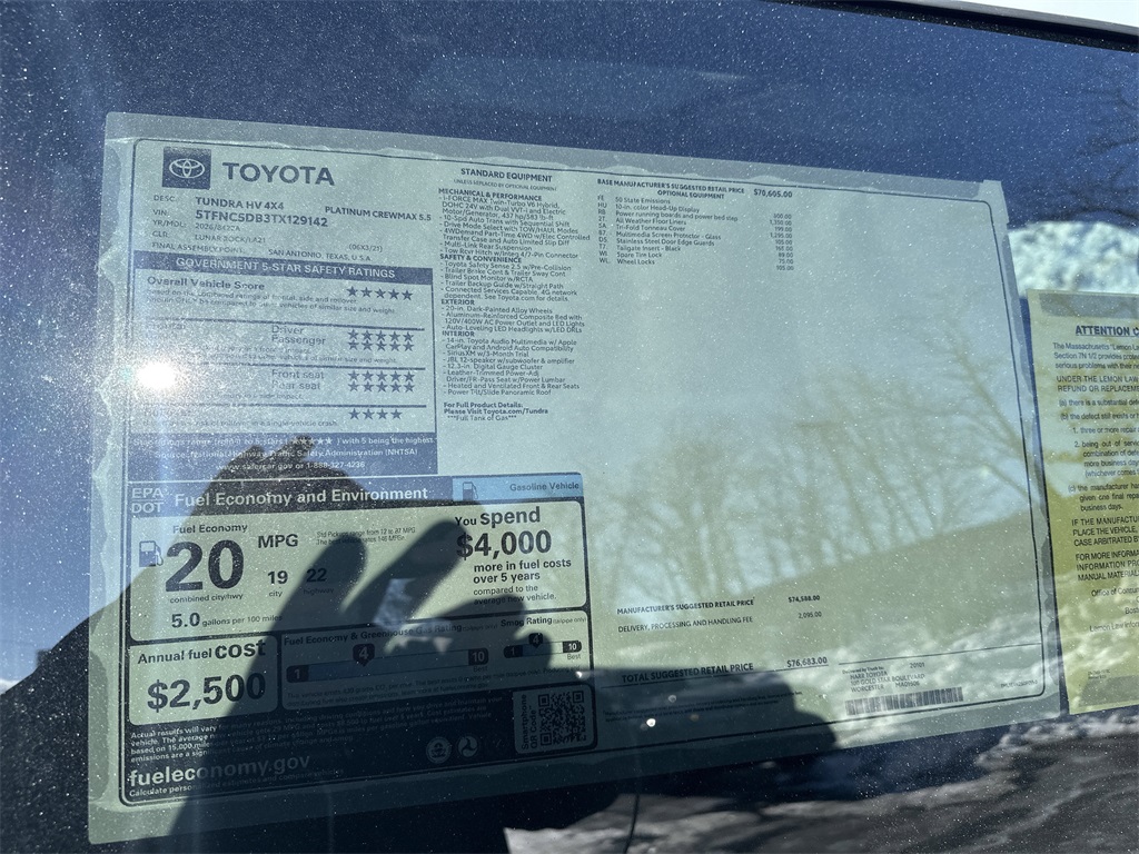 06x3 2026 Toyota Tundra Hybrid Platinum 4WD 10-Speed Automatic 3.4L V6 PERFECT PRICE!, SERVICE RECORDS AVAILABLE, 3.4L V6.